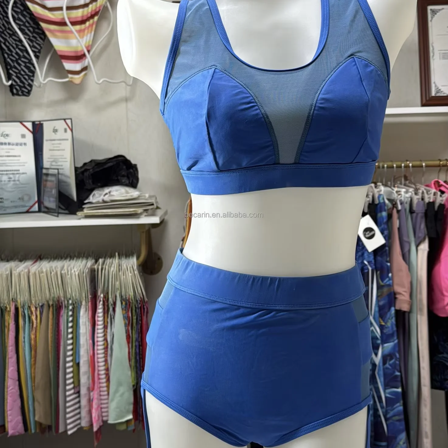 Wholesale 2026 Dance Yoga Wear Manufacturer Blue Two Pieces Set with Custom Logo Option Sports Bra High Waist Shorts
